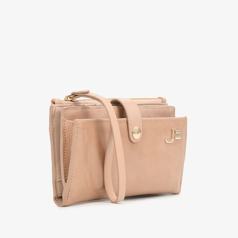 Com 8 compartimentos para cartões e documentos e 4 espaços para cédulas, organiza seus itens de forma prática e refinada. O detalhe das iniciais JB em metal dourado na parte frontal traz o toque exclusivo da marca, enquanto a alça de mão removível permite versatilidade, podendo ser usada como clutch ou carteira de pulso.