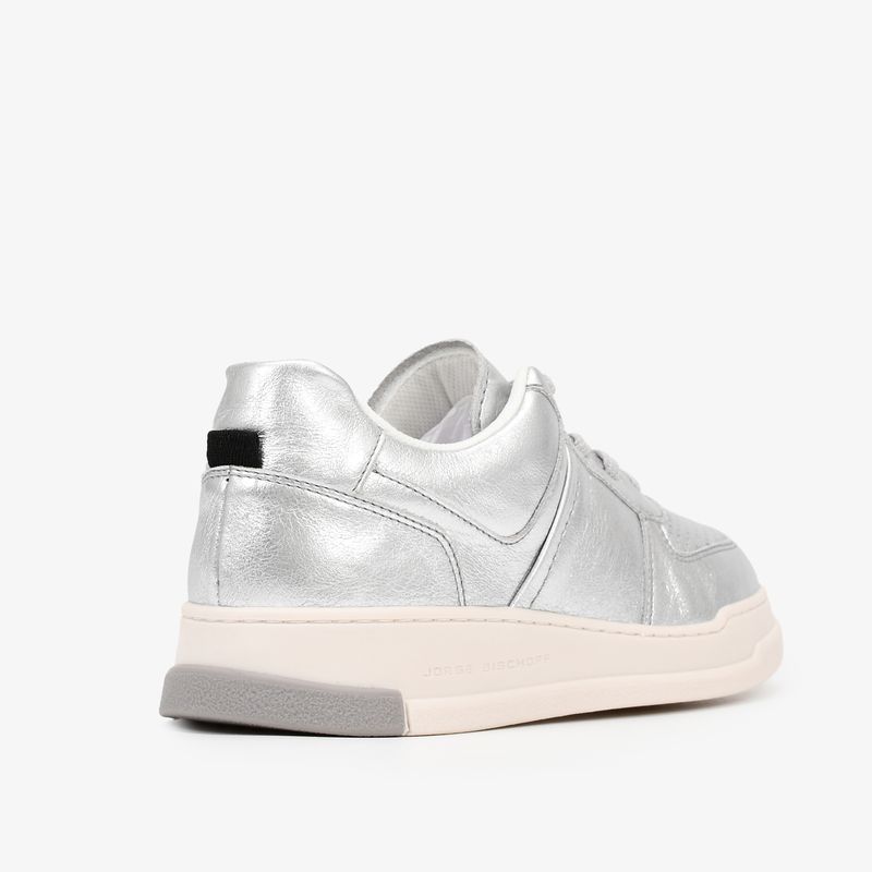 O modelo é de cano baixo e possui fechamento por cadarço cinza. O passador, na cor grafite, apresenta o símbolo da marca JORGE BISCHOFF.